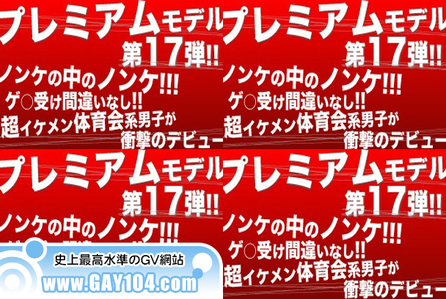 プレミアムモデル第17弾!!ノンケの中のノンケ!!もっとも男に抜かれることが想像もできない超イケメン体育会系男子が衝撃のデビュー!!長期に渡りスタッフが交渉を重ねてきた現役アスリート…男らしい雰囲気に爽やかさ、ガッチリBODY…端正な顔出ちとゲ○受け間違いなし!!!鍛えられた肉体美は必見☆そんな彼をスタッフが責めまくっちゃいました☆イケメンの割に「オナニーしていると思えばいいのか…」と超テレまくり彼!!そんな彼が男に身体を触られ即ビンビン!!さらにローションでジックリ責めまくると感じまくる場面も・・最後はあまりの気持ちよさに耐えられず大量精子を勢いよく発射!!スタッフ一押し☆この機会お見逃しなく☆ |